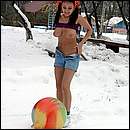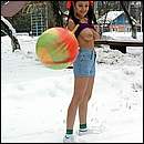tanned beauties playing volley-ball,