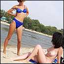 tanned beauties playing volley-ball,