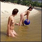 tanned beauties playing volley-ball,